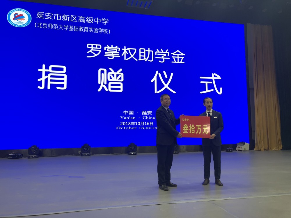 On October 19, 2018, Standing Committee of the Shaanxi Provincial Political Consultative Conference and Chairman of Similan Group in Macau, Mr. Lucas Lo, attended the Yanan New District Senior High School Donation Ceremony and donated RMB 300,000. Vice principal of the High School, Mr. Wang Dianbin, accepted the donation. Earlier in July 2015, Chairman Lucas Lo and Deputy Chairman Maximiliano Lo also donated RMB 12 million to the High School, so as to support and sponsor the educational project which can nurture future talents.